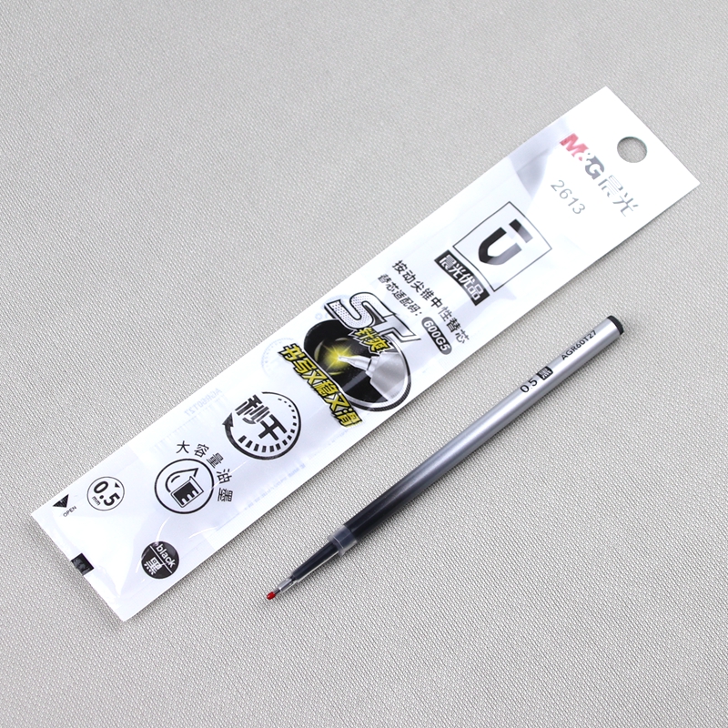 晨光优品2613按动尖锥中性笔芯秒干0.5mm超精细ST笔尖大容量替芯