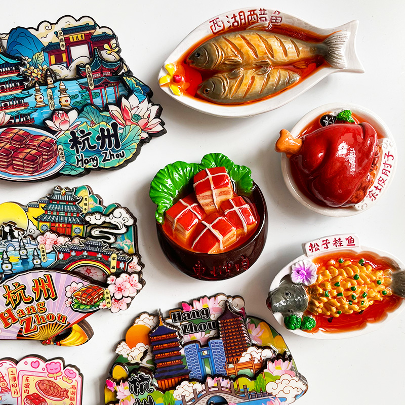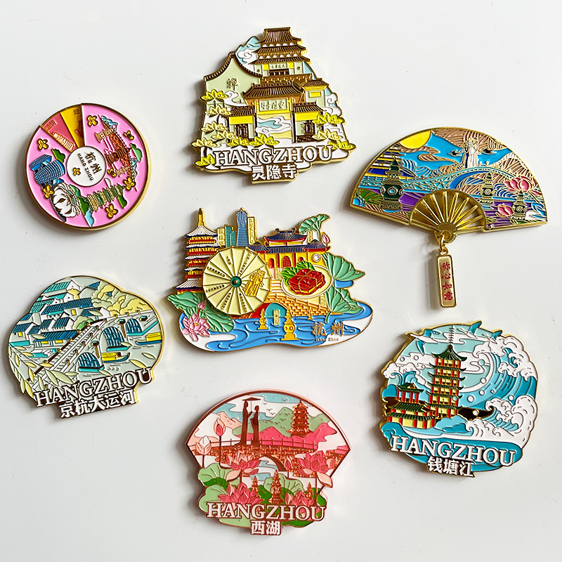 杭州纪念品文创冰箱贴磁贴西湖旅游三潭映月特色礼品金属磁吸磁性