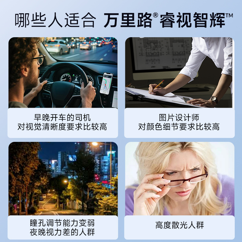 依视路万里路睿视智辉近视渐进多焦点老花镜片钻晶膜致A4蓝光配镜