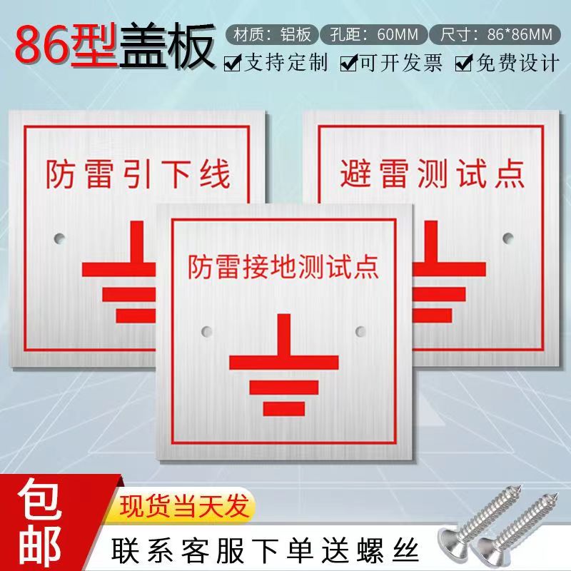 不锈钢防雷接地测试点86型面板避雷引下线标识牌接地电阻盖板定做