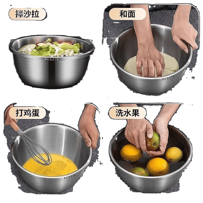 316不锈钢盆食品级加深高档加宽家用厨房打蛋和特厚面盆白钢盆
