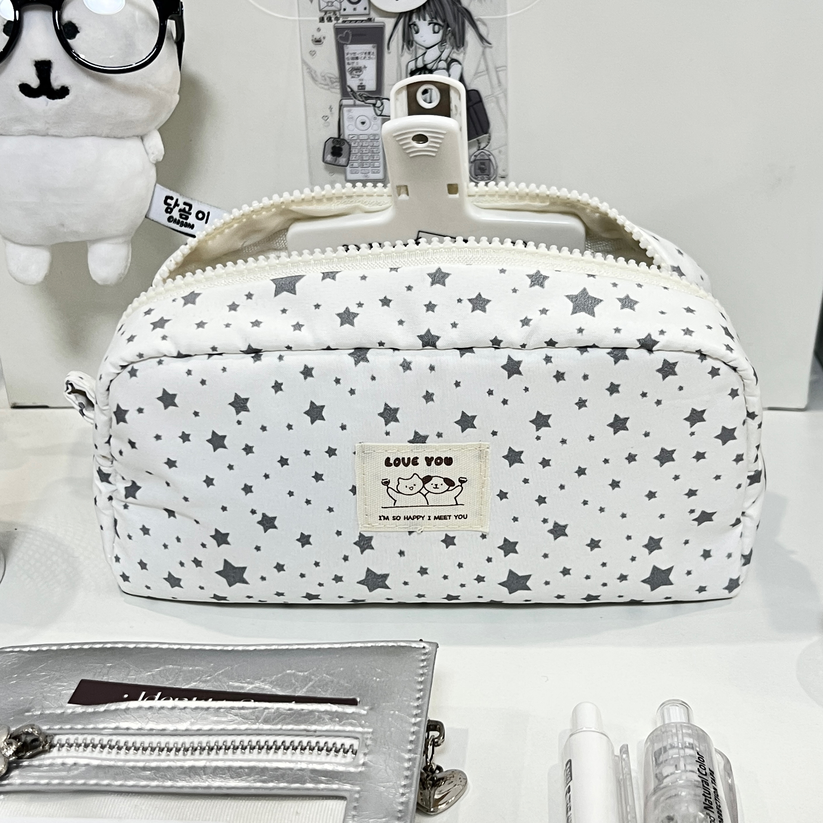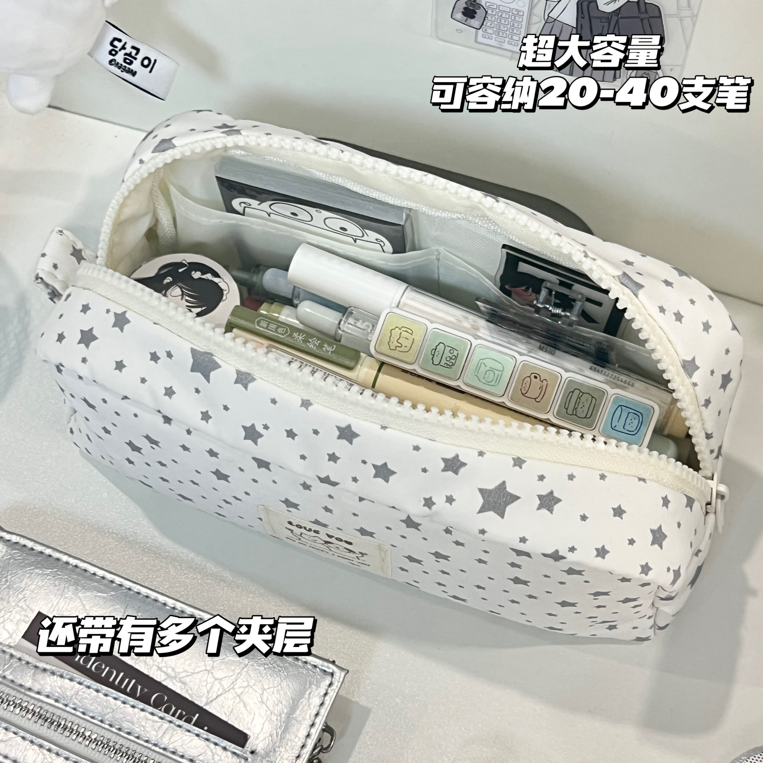 日系灰色星星墩墩包笔袋学生ins可爱高颜值大容量多隔层文具袋