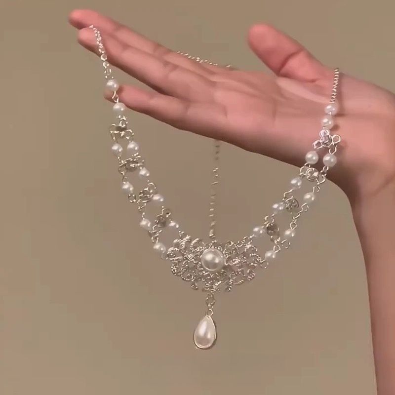 多层珍珠配裙子项链女轻奢小众高级感海边颈链长款叠戴配饰锁骨链