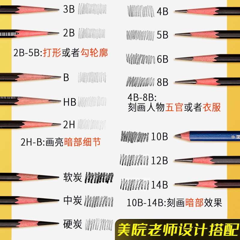马利铅笔素描笔工具套装初学者入门炭笔全套美术生用品软中硬碳笔