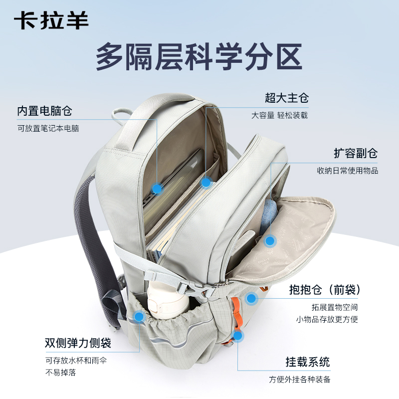 卡拉羊考拉抱抱包大容量户外双肩包徒步登山包防下坠书包女新款