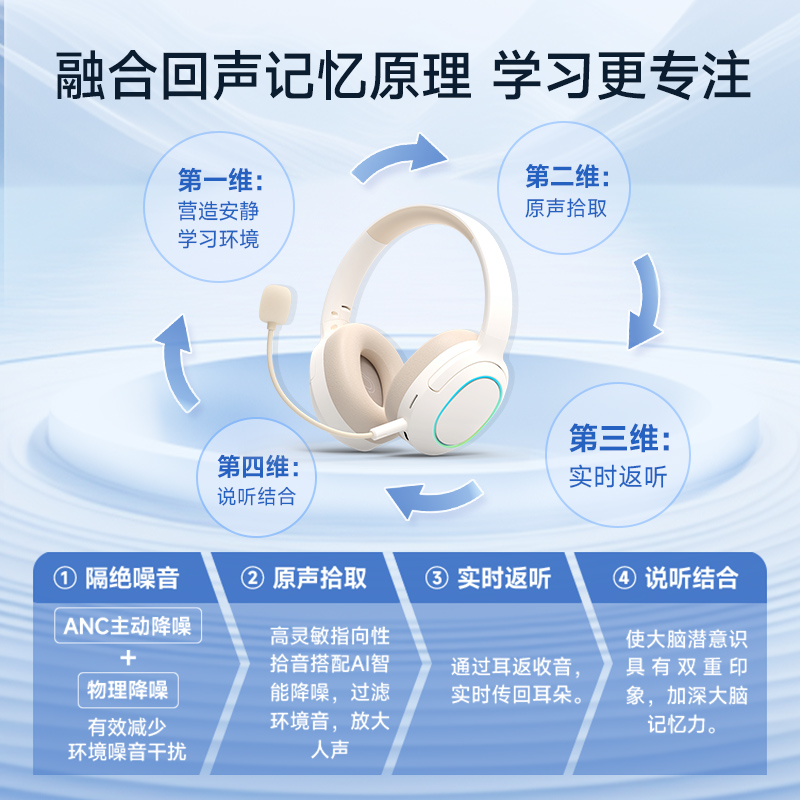 三代儿童诵读耳返式背书神器学习生专用蓝牙耳机头戴anc主动降噪