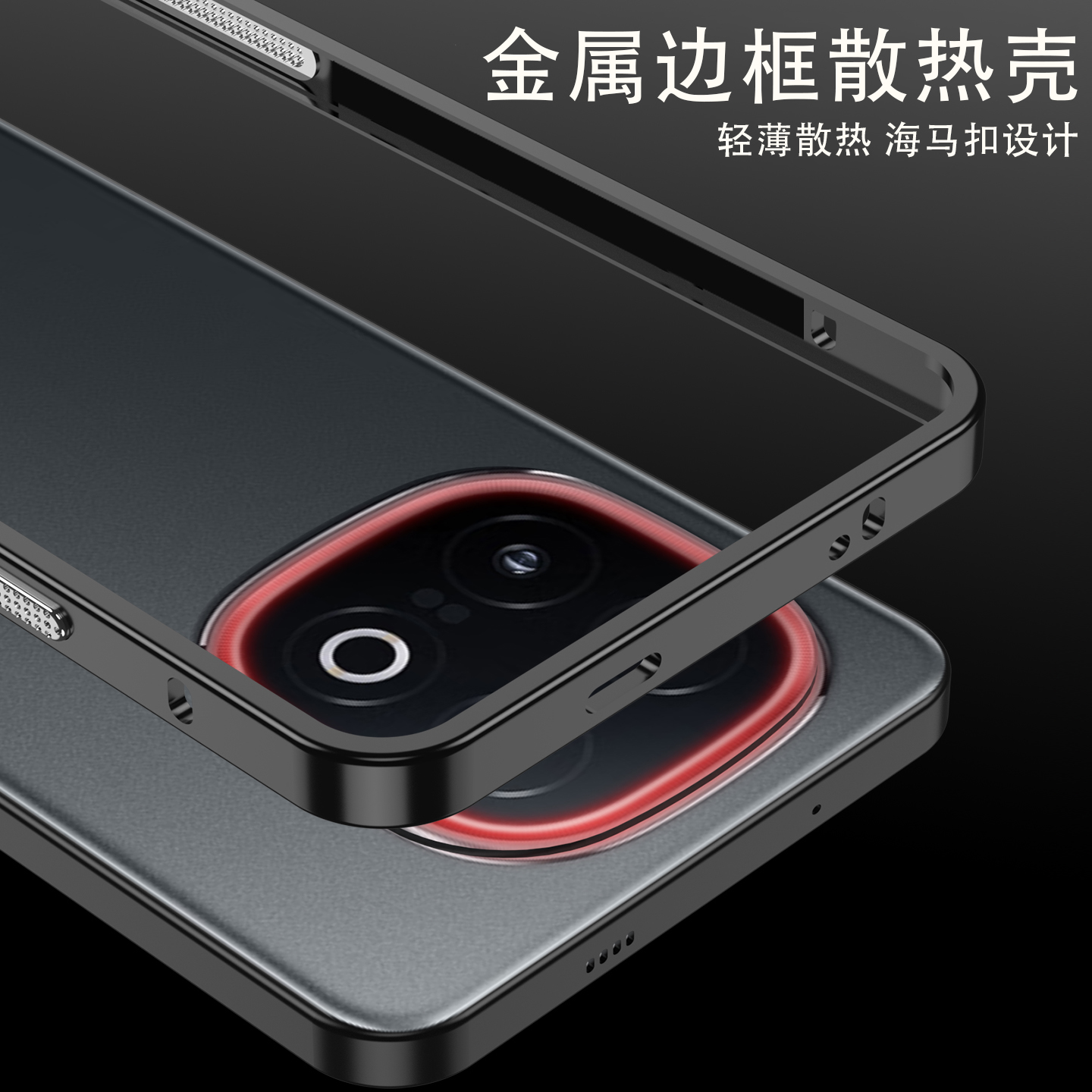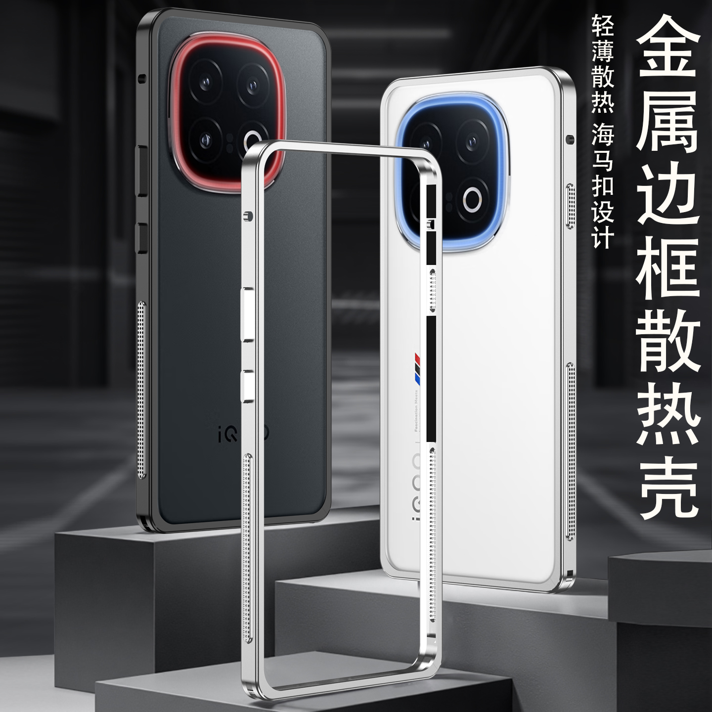 金属边框散热壳适用iQOO 13手机壳新款无背板iqoo13海马扣轻薄降温防摔保护壳iQOO男女款简约适合夏天的外壳