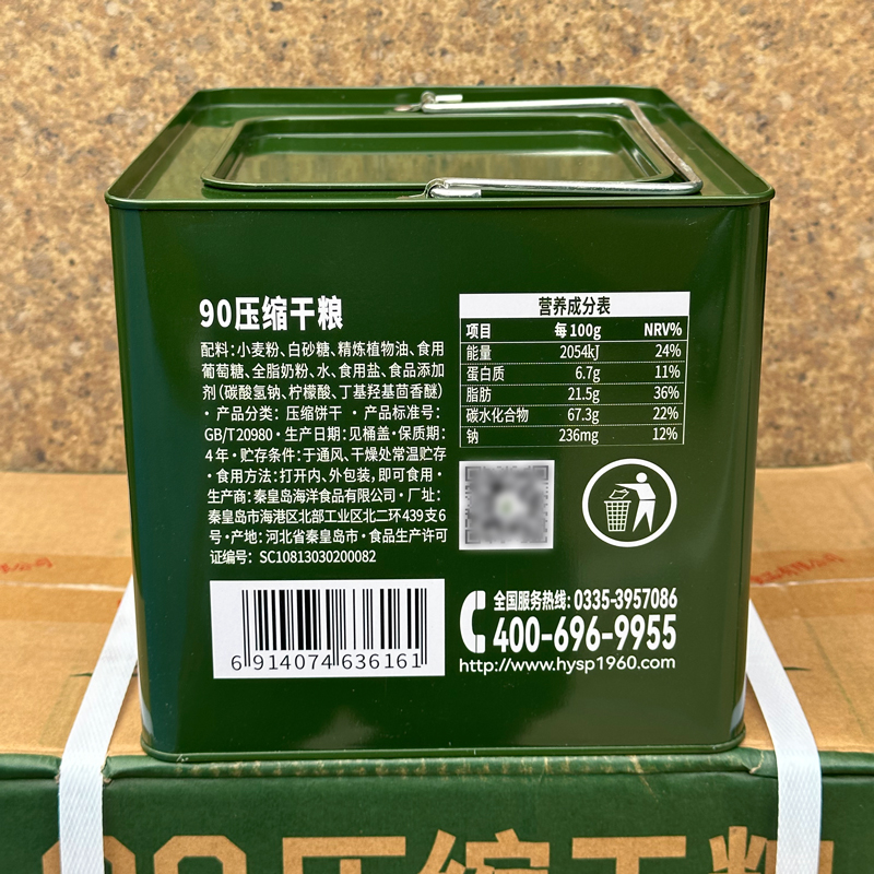 900压缩饼干铁桶装学生饱腹高能量13压缩干粮长期应急储备食品