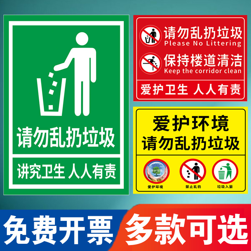禁止乱扔垃圾警示牌注意卫生贴纸爱护环境保持清洁温馨提示牌不要乱扔垃圾贴纸环境卫生标语标识牌警示牌定制