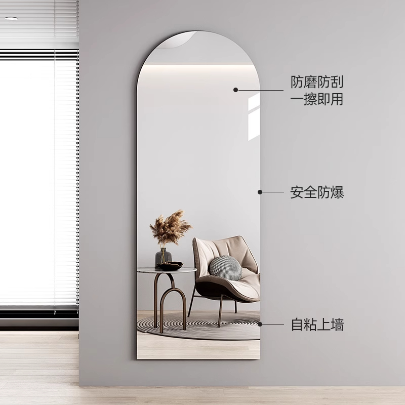 拱形亚克力软镜子贴墙自粘可以贴墙的全身穿衣镜家用高清门后衣柜