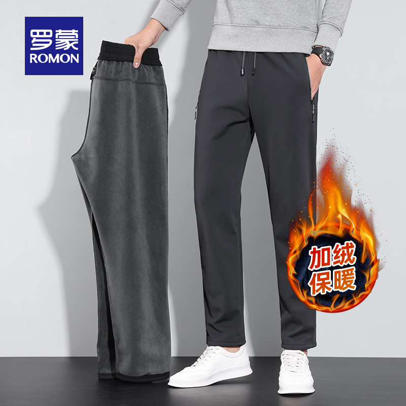 【石墨烯抗菌+四面弹】罗蒙男士休闲裤2025秋季新款加绒保暖长裤