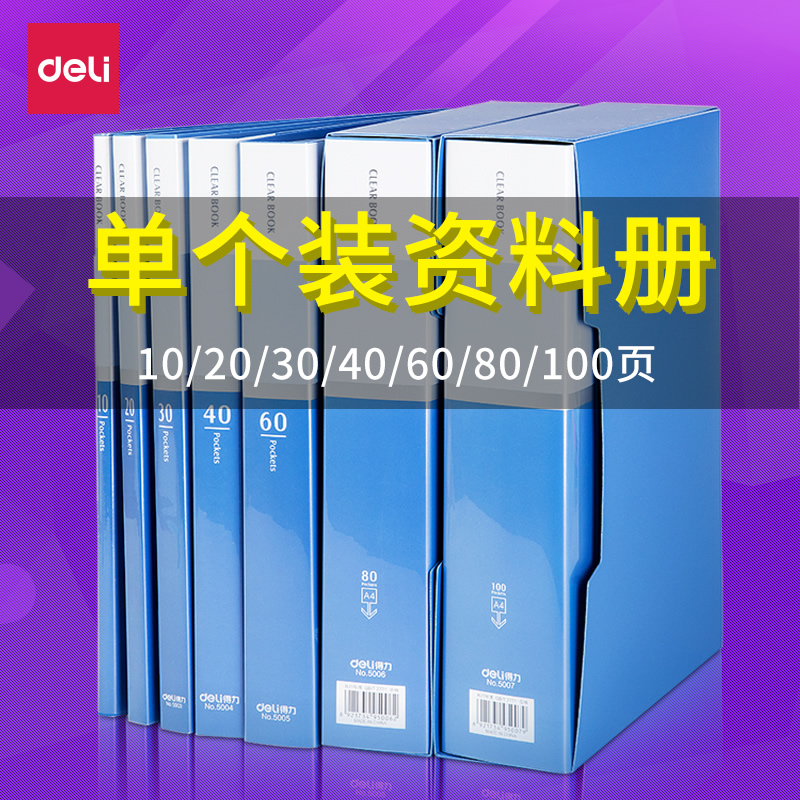 得力A4资料册 文件夹插页袋式翻页乐谱曲歌普吉他钢琴谱夹本 透明多页分活试卷子夹收纳证书册蓝色多层档案册