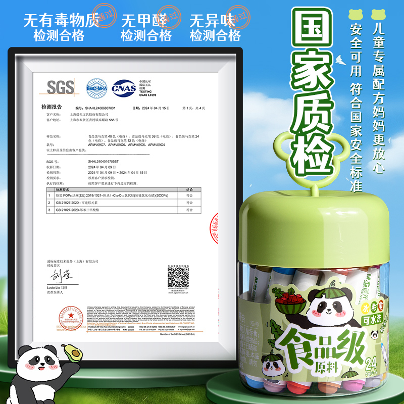 晨光易可洗水彩笔熊猫款食品级原料幼儿园小学生专用画画笔套装24色儿童可水洗毒无36色彩色涂色笔美术绘画