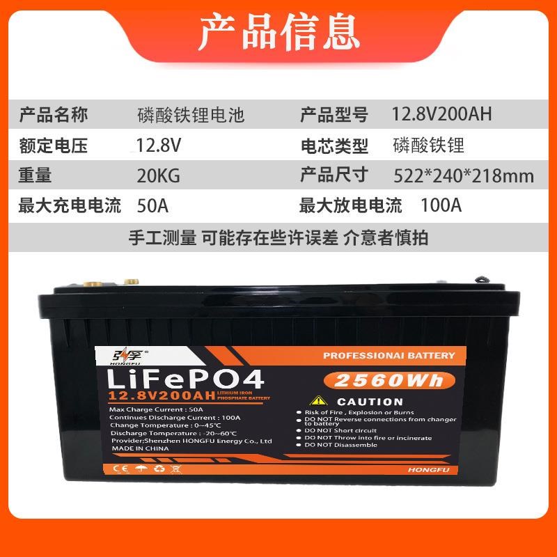 12v200Ah磷酸铁o锂电池替代铅酸备用电源户外露营游艇房车储能电