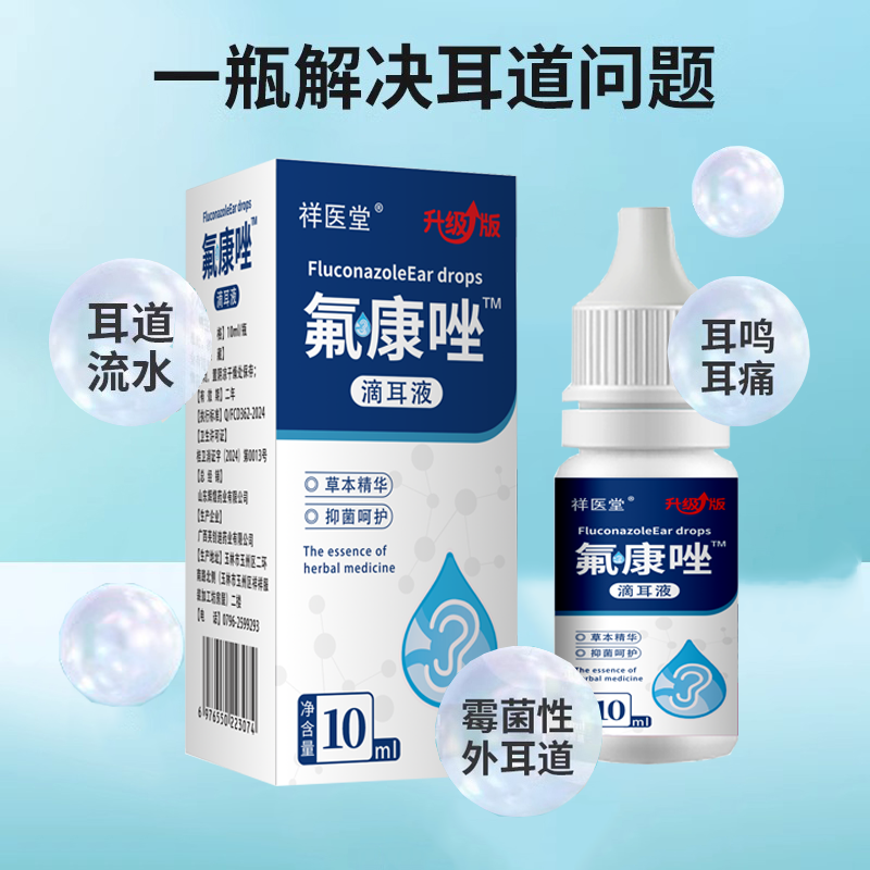 氟康唑滴耳液人用真菌霉菌性含硼酸氟康挫外耳道耳朵感染10ml抑菌