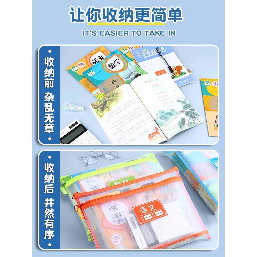 学科科目分类文件袋拉链式双层大容量小学生用资料书本课本分科书袋试卷收纳袋学生装卷子作业袋子A4透明网纱