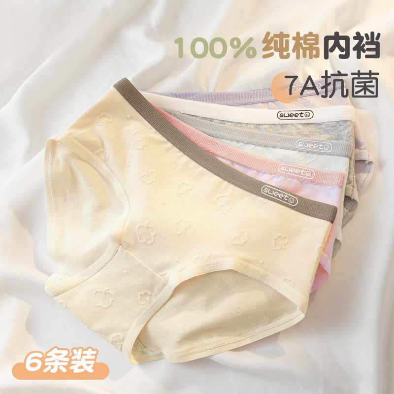 全棉时代内裤女士纯棉中腰女生内裤三角裤短裤新款不夹臀抗菌内裤