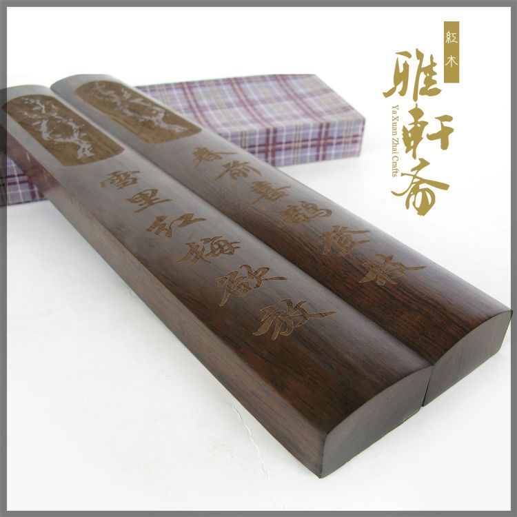 H雅轩斋】特别重沉于水 红木工艺品镇纸 黑梓木雕镇尺 梅花对联