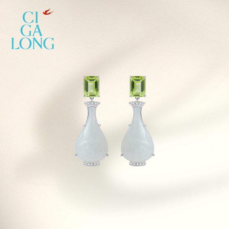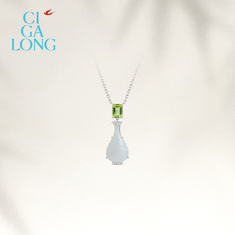 付辛博同款CIGALONG龙梓嘉莲纹宝瓶和田玉橄榄石项链新中式珠宝