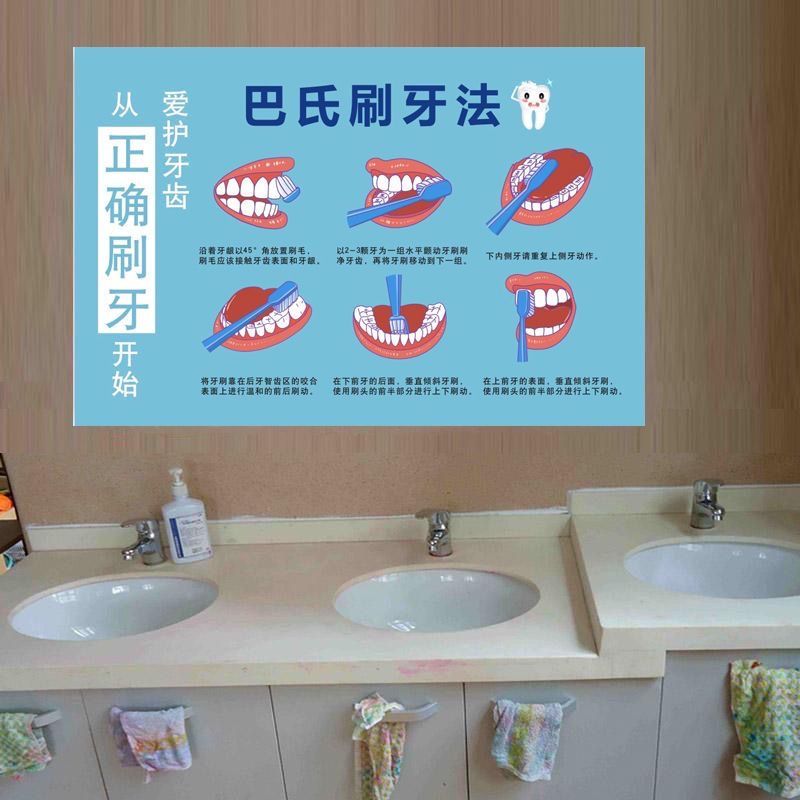 巴氏刷牙法贴纸儿童刷牙步骤图医院诊所口腔提示挂图不干胶贴纸