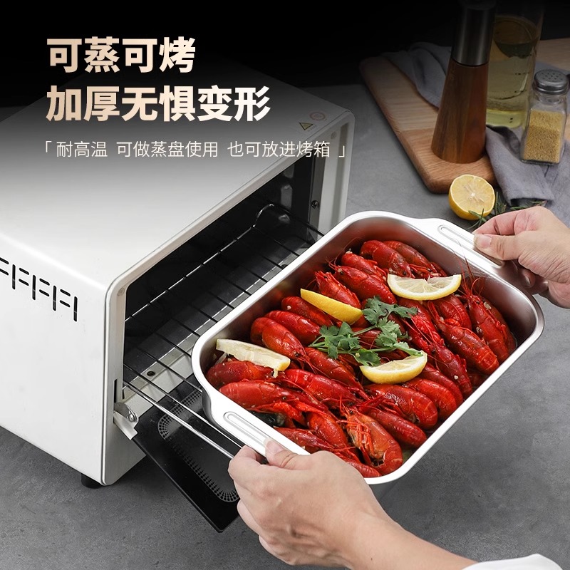 不锈钢烤鱼盘长方形家用深盘托盘小龙虾盘电磁炉食品级烧烤烤箱