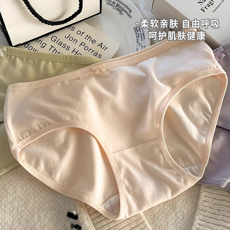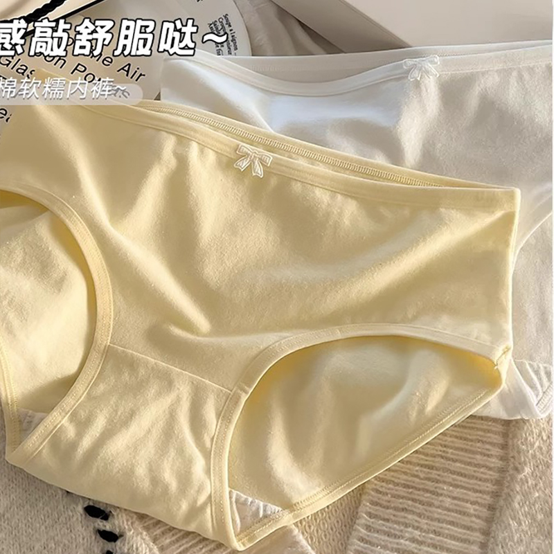 内裤女纯棉内裤纯色蝴蝶结中低腰无痕少女生简约透气日系学生新款