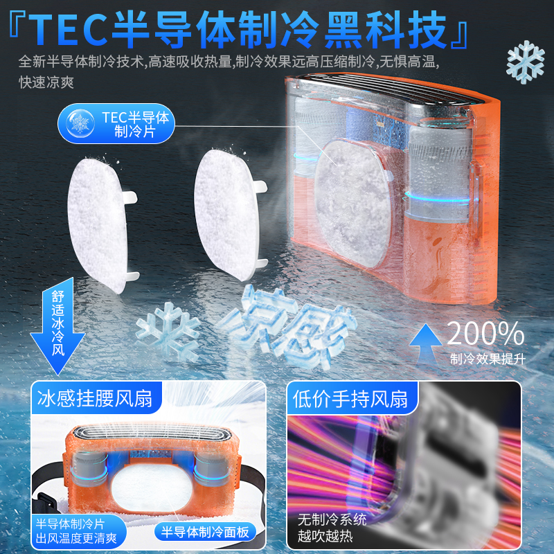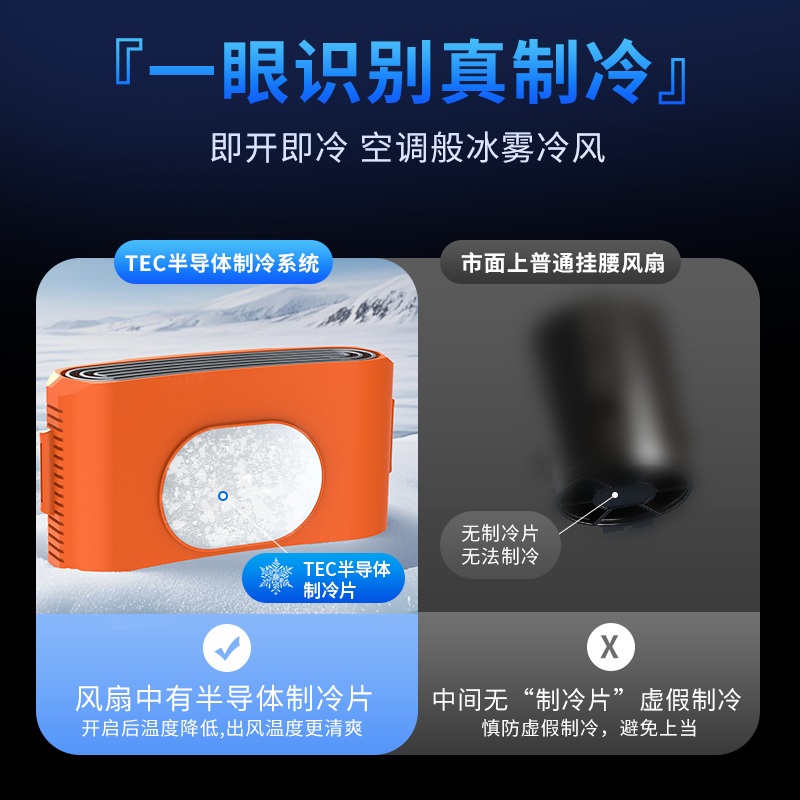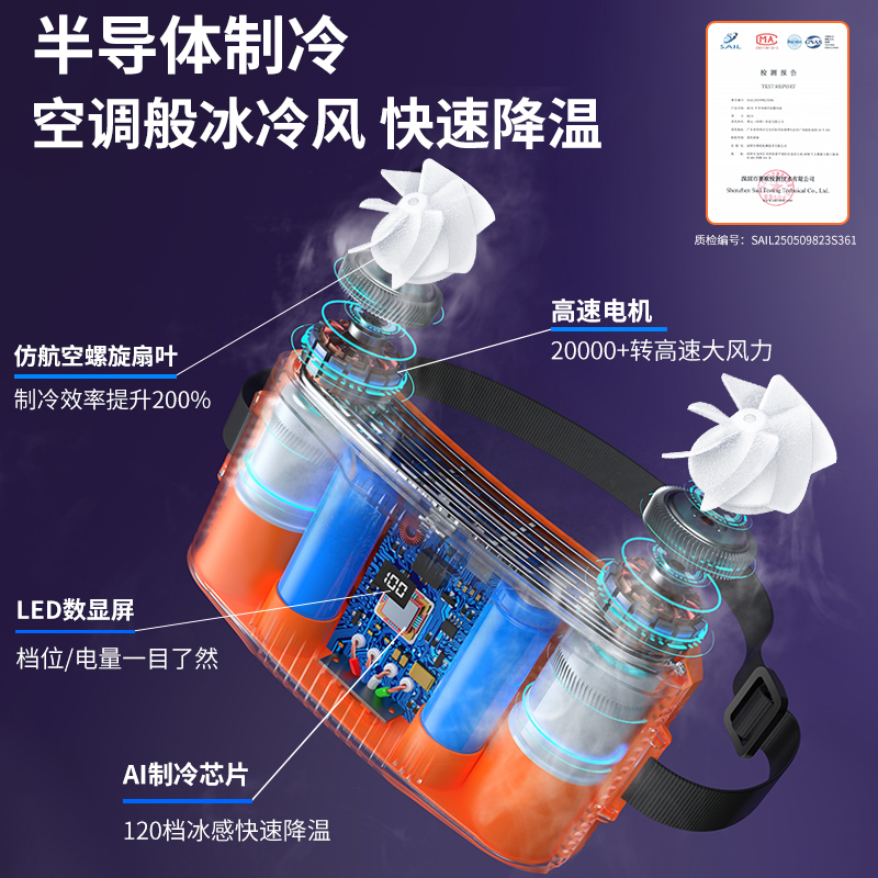 挂腰风扇2025新款夏季户外超长续航半导体强力随身小风扇工地腰间制冷空调钓鱼外卖厨房大风力便携式降温神器