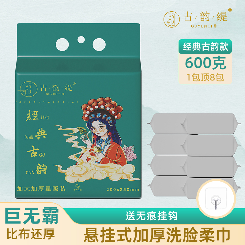 洗脸巾量大悬挂一次性亲肤加厚面巾纸古韵抽取式挂式家庭装国货