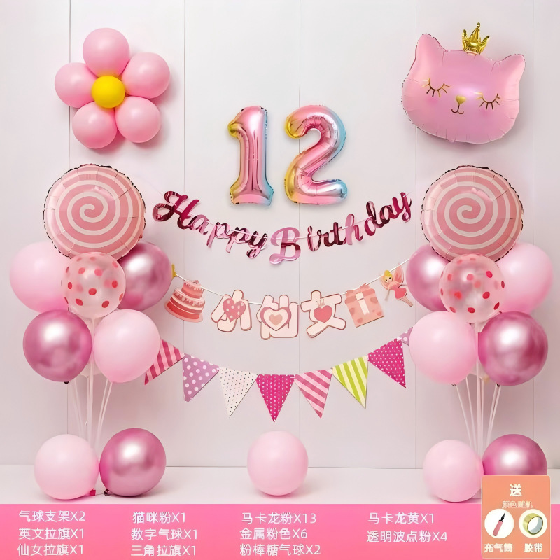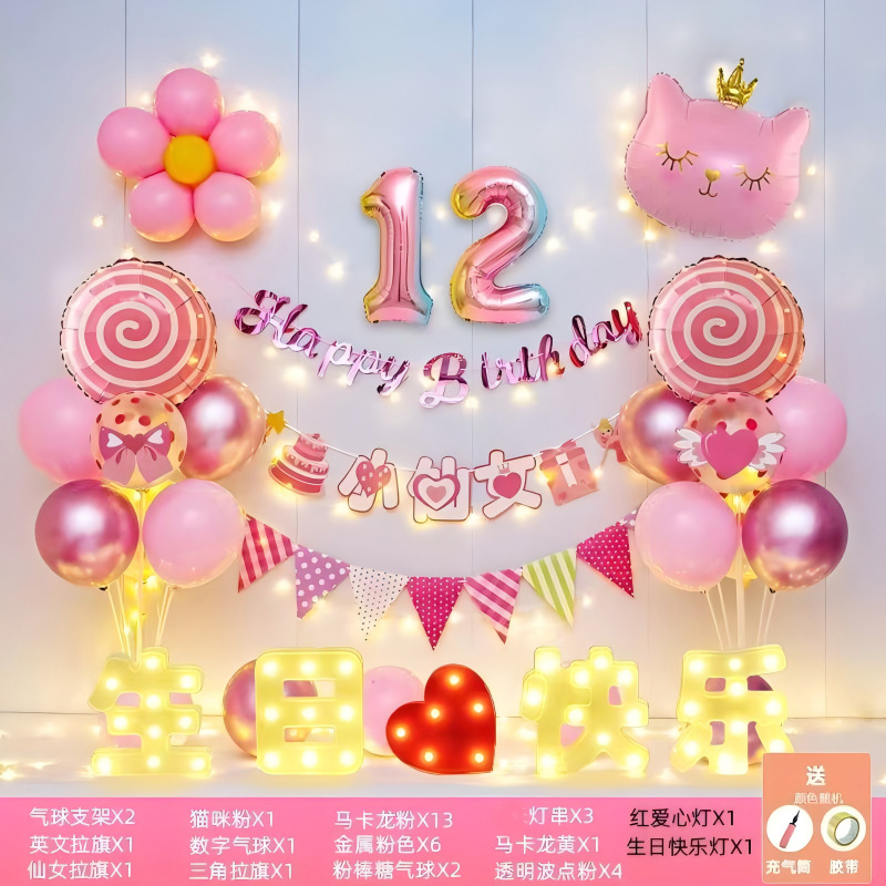 生日布置装饰品场景氛围12岁仪式感小女孩男孩气球背景墙周年庆
