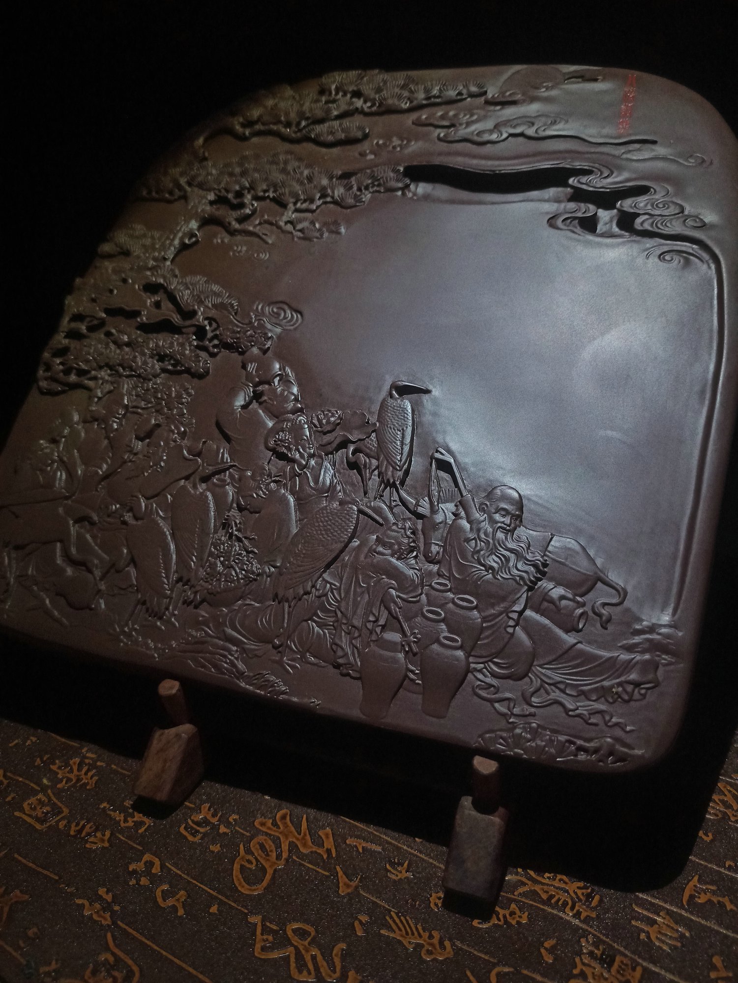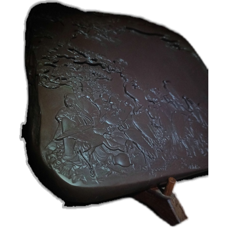 中国黄石黄石砚文房四宝书法绘画用品孤品手工砚八仙过海送礼佳品