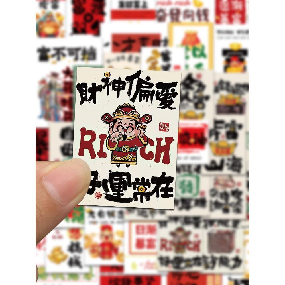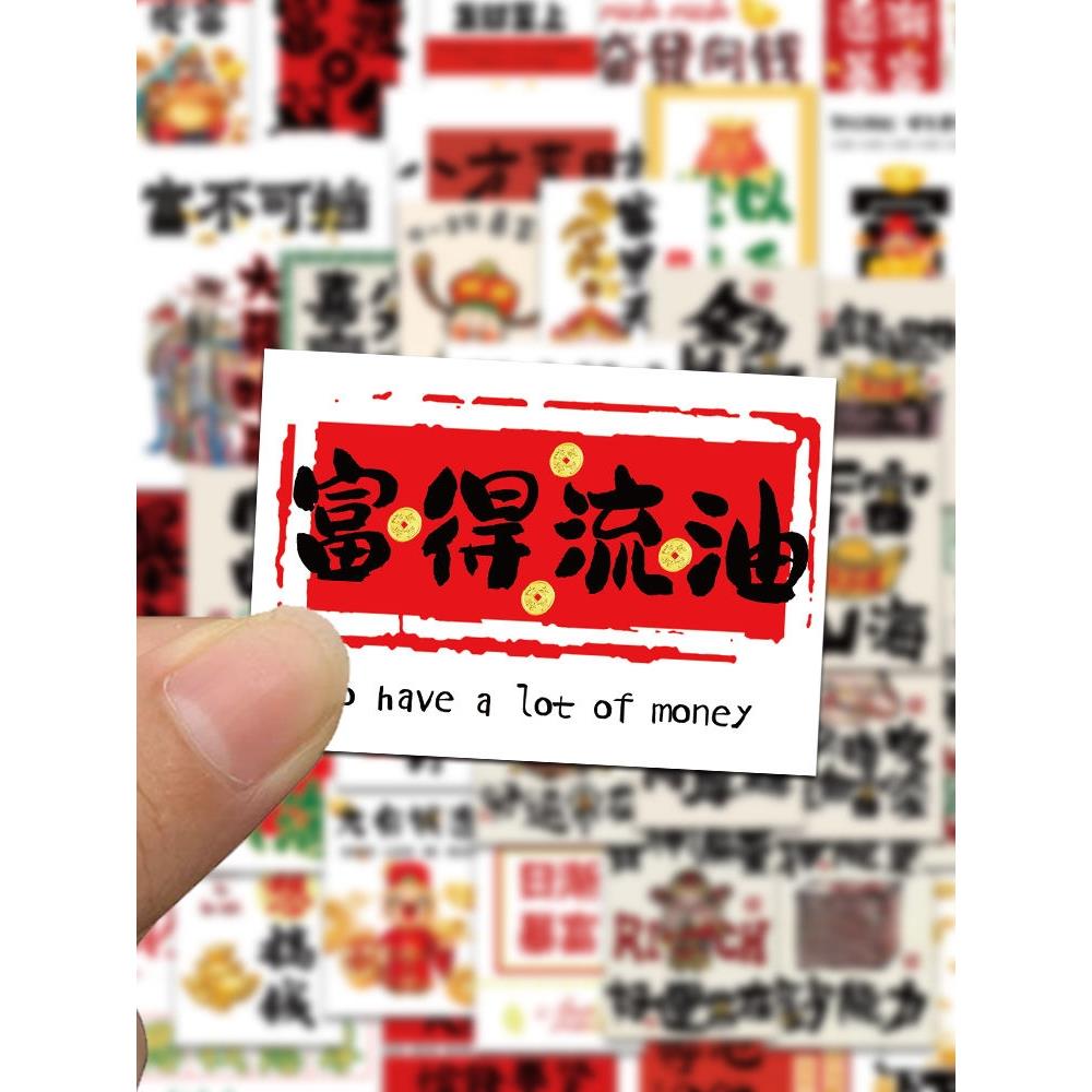 100张暴富有钱文字笔墨画书法贴纸个性创意手机壳笔记本防水贴画搞笑文字贴桌面保温杯装饰自粘小贴画