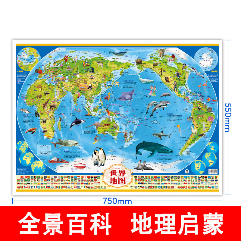 2024新版少儿趣味地理知识百科全书中国地图和世界地图儿童版高清大尺寸地理知识地图墙贴初中小学生版贴画挂图世界和中国地理挂画