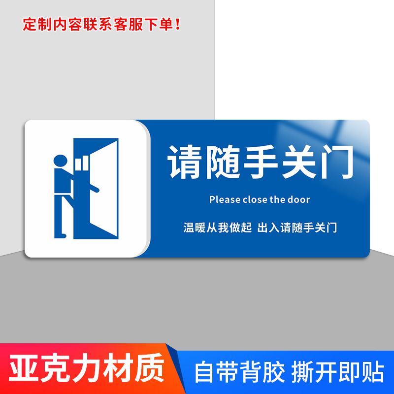 请随手关门提示牌亚克力标识牌背胶撕开即贴防水防晒办公室车间工厂门店随手关门标志牌标识牌定制定做