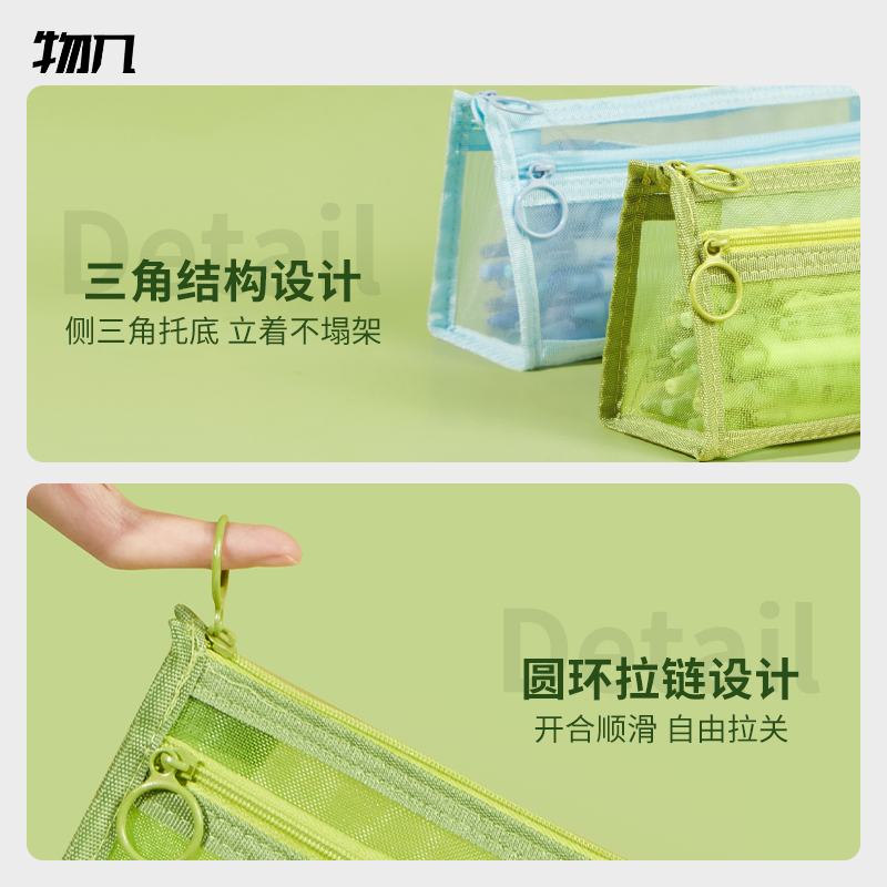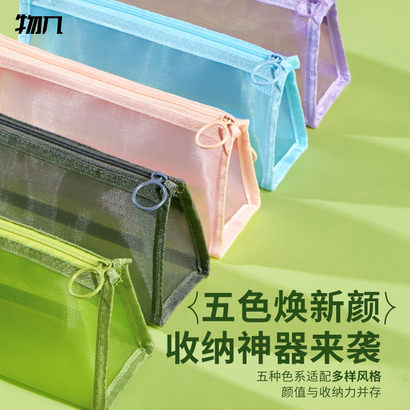 物几 网纱透明笔袋高颜值ins风学生考试专用中高考文具笔袋女生2025新款双层加厚大容量文具盒男女便携收纳袋