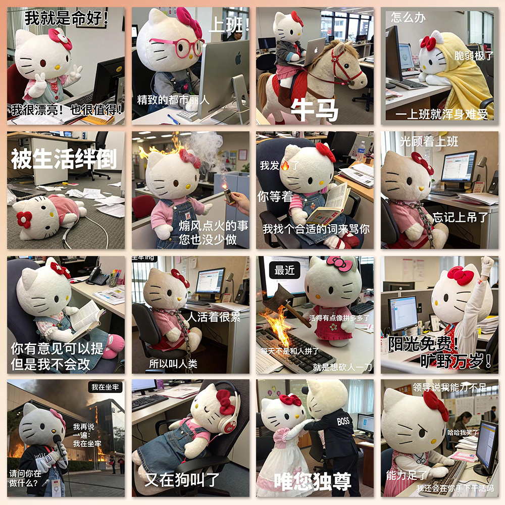 126张HelloKitty发疯表情包爆款抽象精神状态梗图平板手机壳贴纸