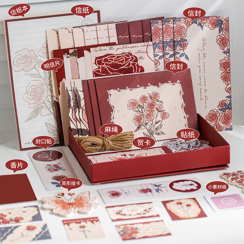 纸先生 玫瑰史诗手写信笺套装信封信纸 520七夕生日情人节送男女朋友信签贺卡明信片生日礼盒