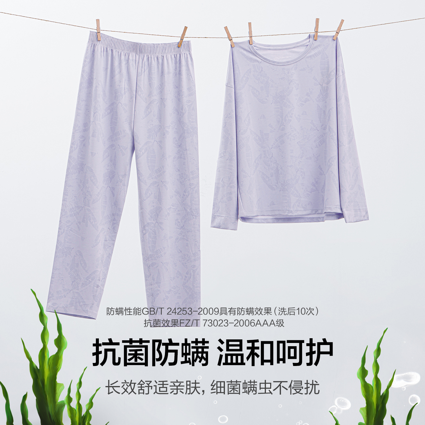 爱慕25新品海藻睡眠衣睡衣女抗菌防螨长袖长裤分身家居服套装