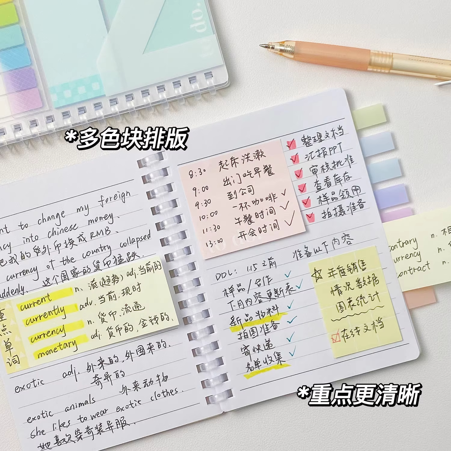 分享时光活页本夹心本便利贴扩张贴学生用考研有粘性网红同款便签贴纸多功能小条高颜值索引标签贴风办公室