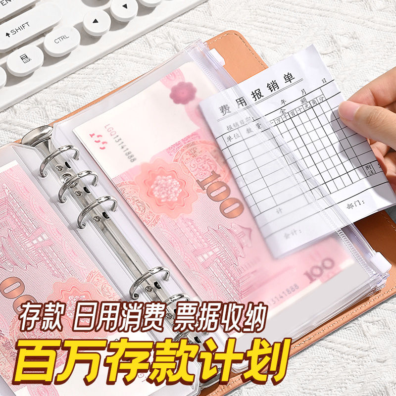 现金存钱本百元收纳册网红现金收藏册大容量2025年新款理财防水人民币收藏册存钱夹钱册活页存钱袋带密码锁