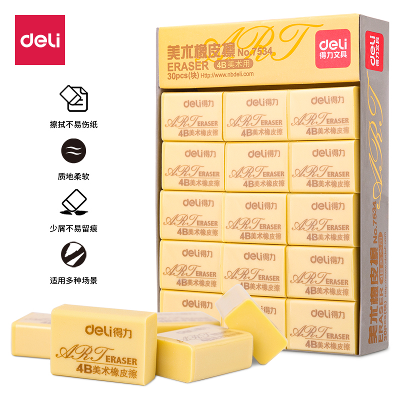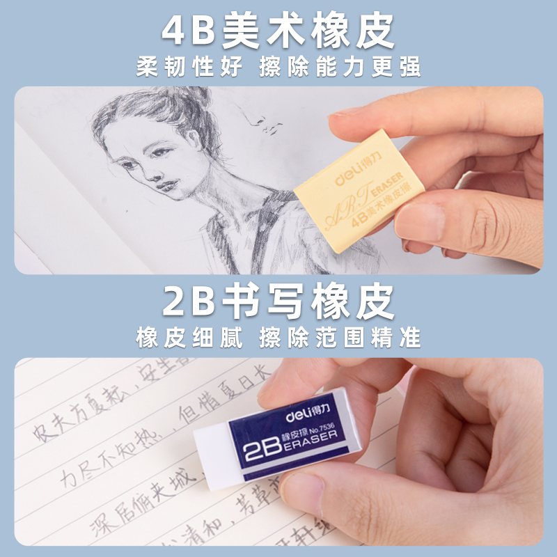 得力4b小学生橡皮擦素描无屑少屑像笔擦专用超干净不留痕擦得干净幼儿园美术生专用像皮擦铅笔擦字成线象皮擦