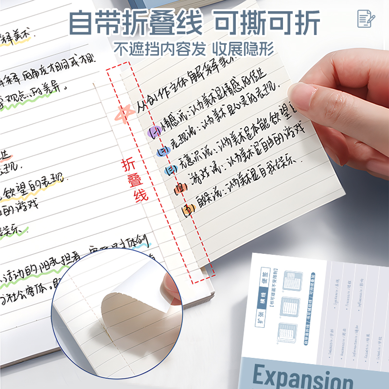 扩张便利贴可折叠有粘性便签纸可撕贴初高中生专用大号错题记事贴拓展n次贴索引贴笔记贴学校横线开学不遮挡