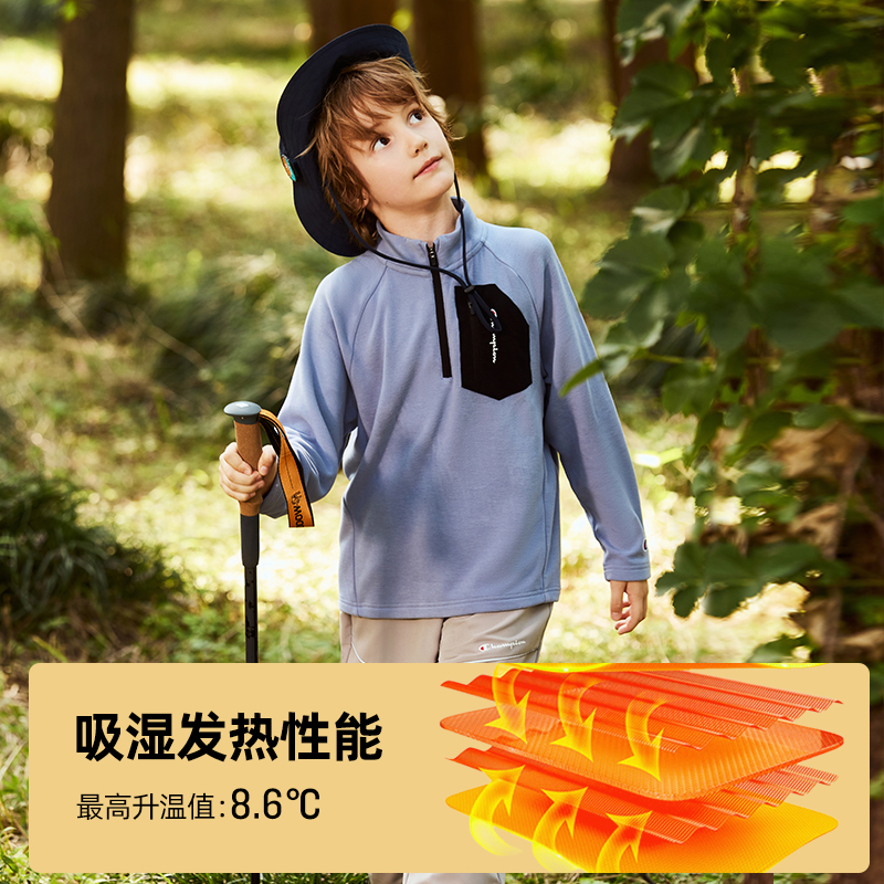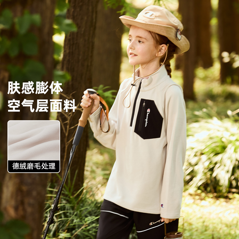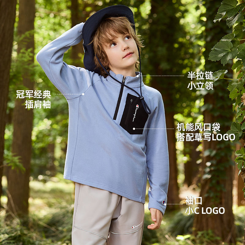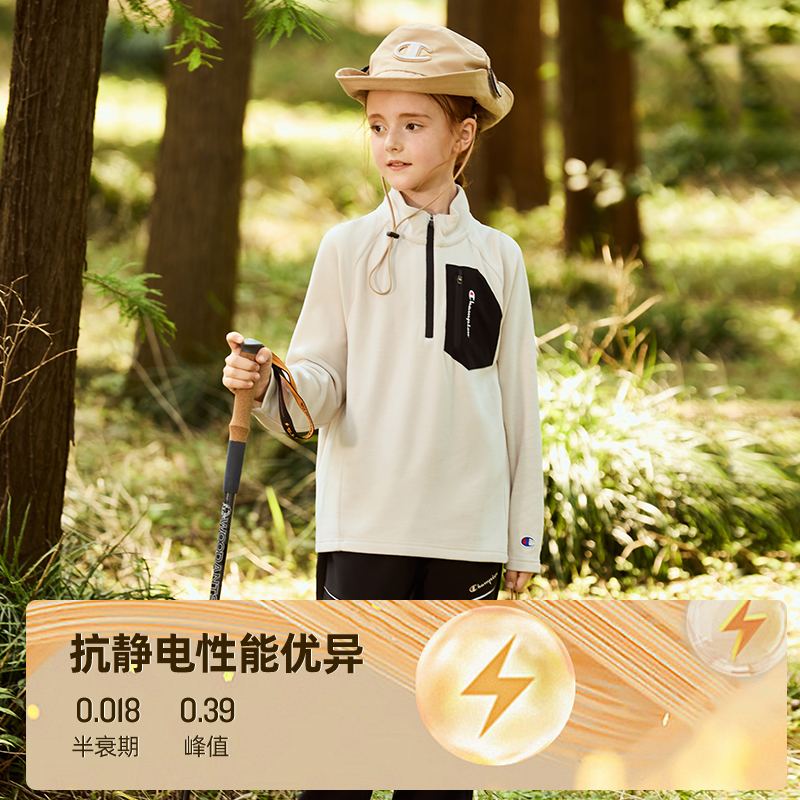 [防静电]Champion冠军男女童装25秋新半拉链吸湿发热德绒长袖T恤