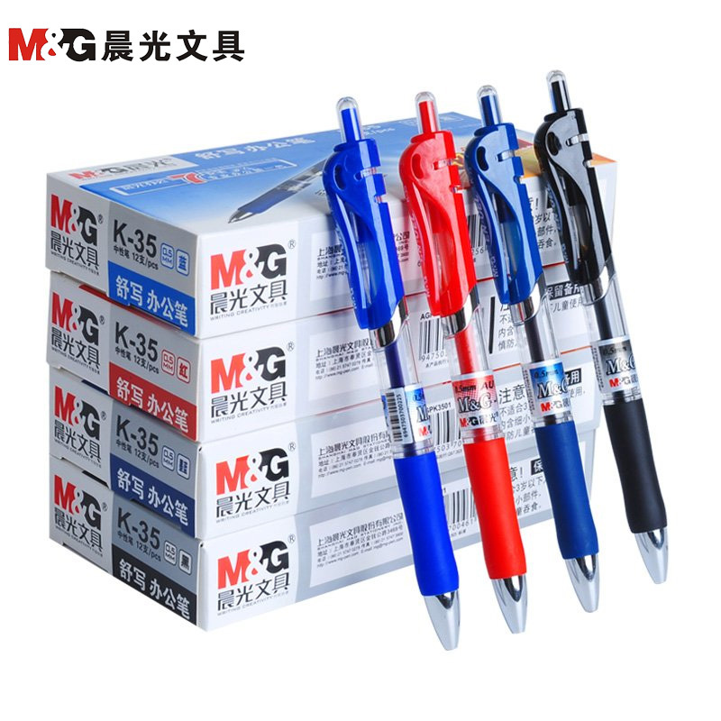 包邮晨光k35按动中性笔水笔学生用考试碳素黑色水性签字笔芯0.5mm