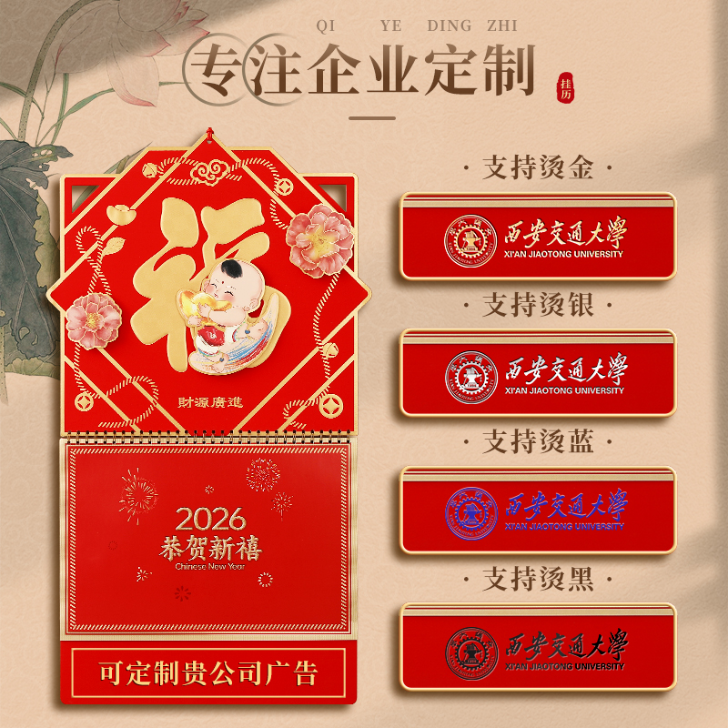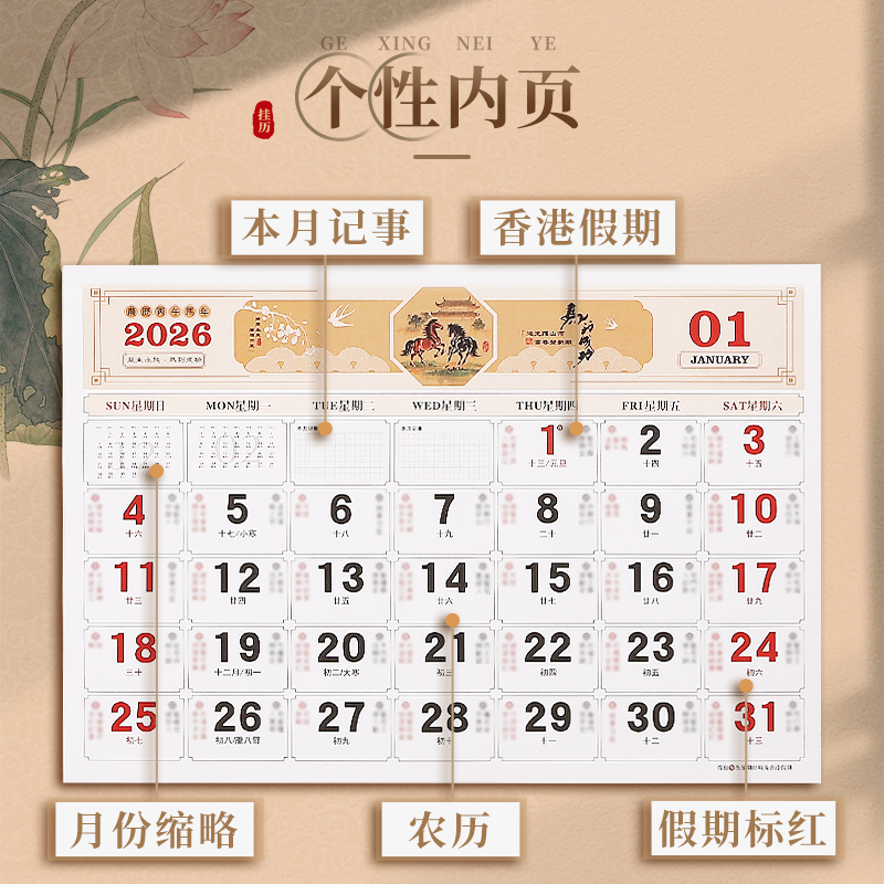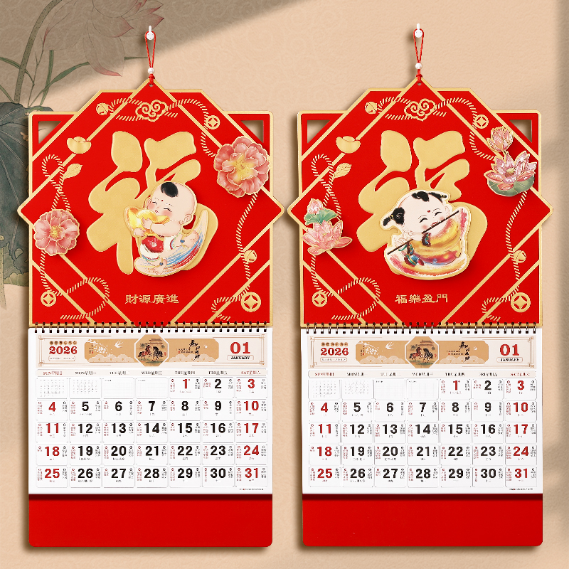 2026马年新款高档挂历既是每日的日历也是每月的月历家用可挂墙配有福字立体吊牌质感高档自用或送礼都很合适