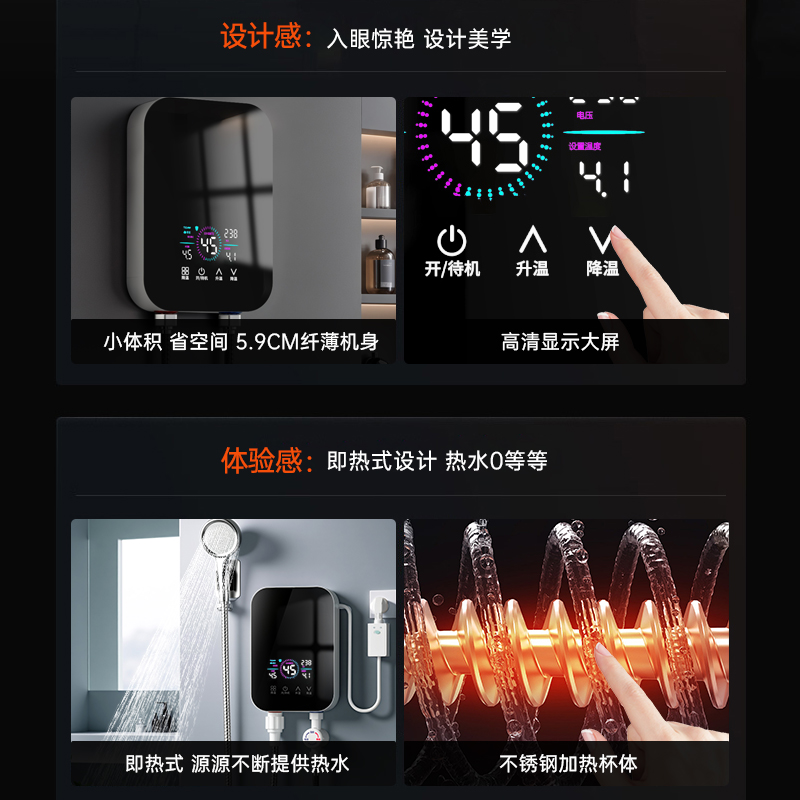 Heiai即热式电热水器出水即热洗澡免储水7000w一级能效恒温速热