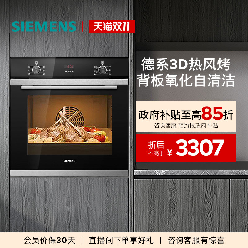 西门子欧洲原装进口嵌入式电烤箱专业智能自清洁珐琅大容量HB233