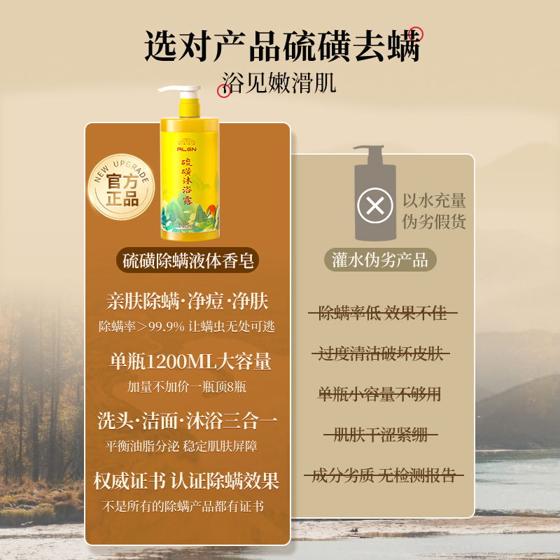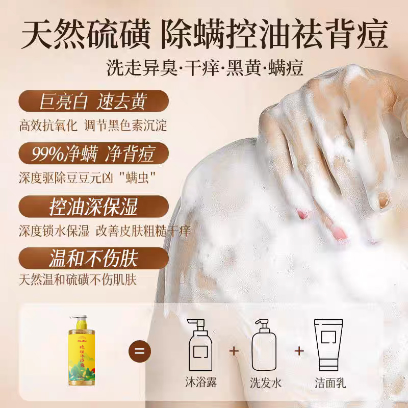 硫磺沐浴露除螨后背祛痘止痒持久留香三合一正品国货抑菌洗发净螨