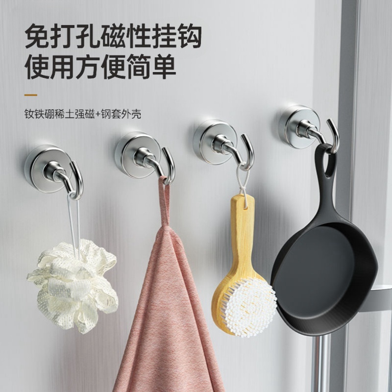磁吸挂钩强磁力圆形吸铁石强力免打孔磁性挂件钩冰箱门后吸力承重