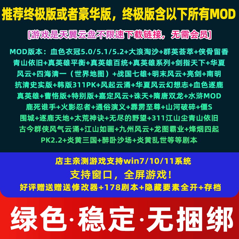 三国志11威力加强版血色衣冠+真英雄178剧本志11全MOD支持win7-11