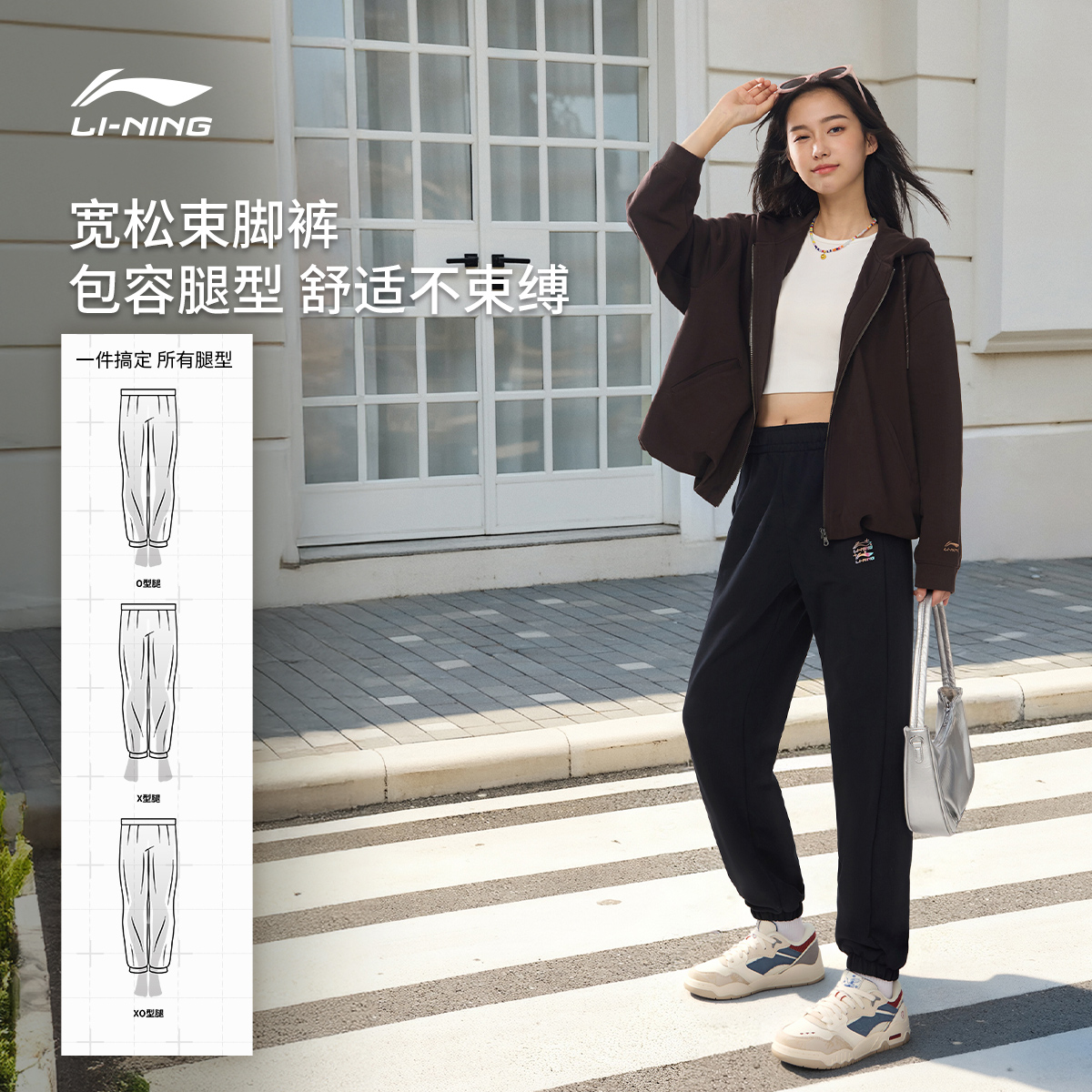 李宁奶芙裤丨香蕉裤女新款秋季宽松休闲阔腿裤加绒卫裤针织运动裤